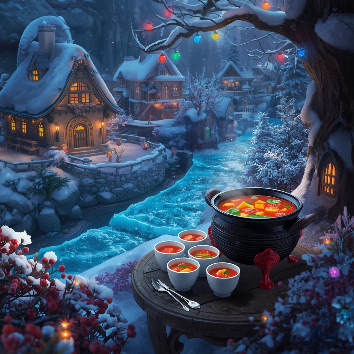 A colorful mix of yellow squash, zucchini, Mexican squash, and white pumpkin sliced into wheels and roasted until lightly caramelized. Roasted onions and tomatoes add depth and sweetness. The base is made with cabbage, onion, tomato, and veggie broth cooked until tender and saucy. The roasted squash wheels, roasted vegetables, and fresh greens are folded in at the end to keep their shape and color. Packed as a 6 pack of 8 ounce cups, this Frostlight Wonderland calabasitas is bright, hearty, and perfect for individual meals or meal prep.